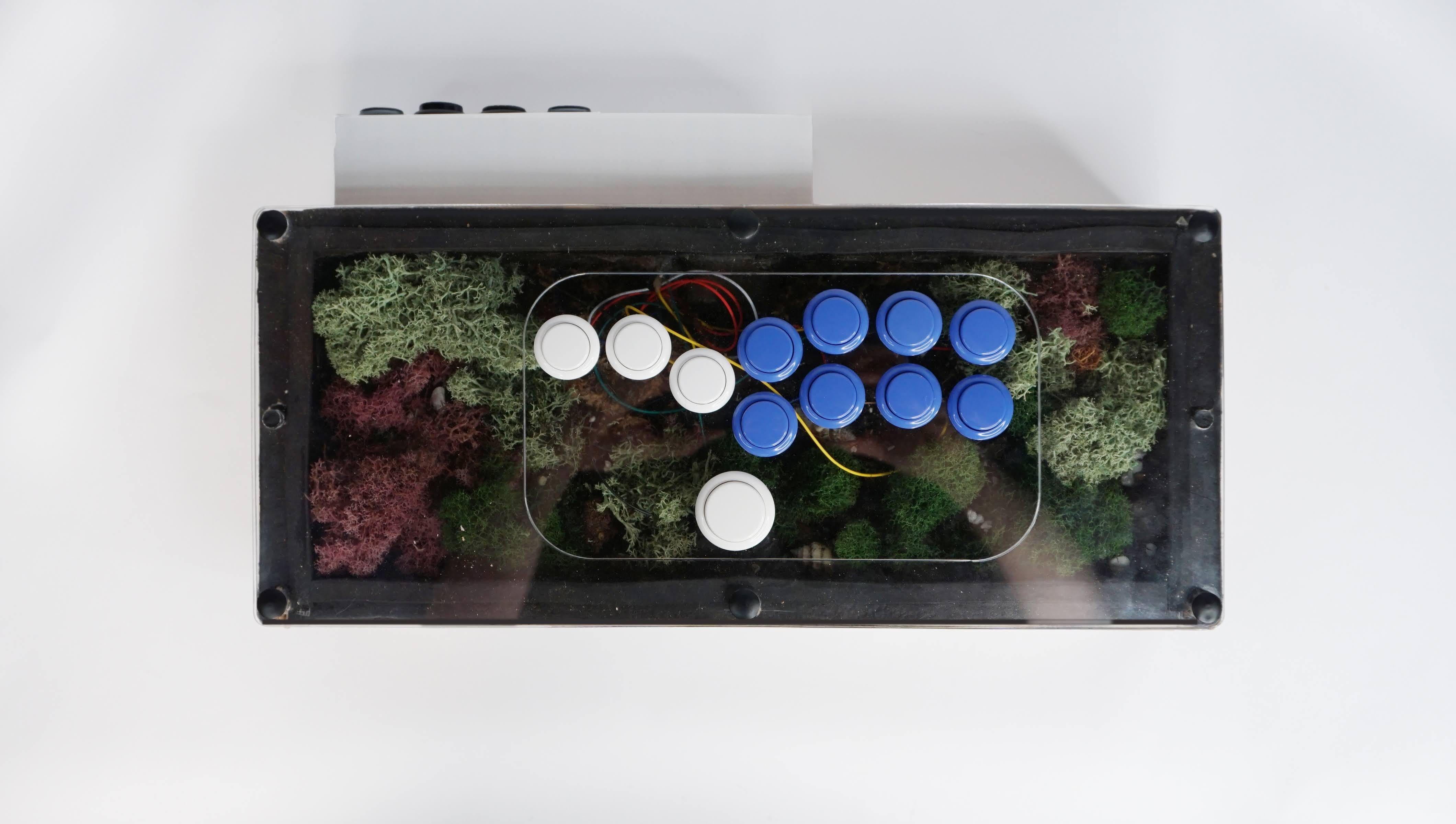 The Terrarium Hitbox plays with the effects of plants on human mood, and cognitive function, while also creating a relationship of care between the user, and the input device. By doing this it aims to create a more positive and caring environment for the user, in a space that's historically fairly toxic. - Ofir Rosen via @ofirrosen_